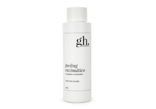 Peeling enzimático en polvo, formulado con 2 enzimas derivadas de frutas (papaya y piña) que se activan al contacto con el agua. • Ayuda a eliminar las células muertas, a mejorar el aspecto de los poros, manchas y marcas, revelando la luminosidad cutánea. • Fórmula enriquecida en manitol que ayuda a estimular la regeneración celular. • No contiene gránulos. • Indicado para todo tipo de piel. Productos complementarios • gh solución micelar natural hidratante • gh mascarilla ultrahidratante Puntos a destacar de la fórmula • Favorece la penetración de activos cosméticos que se apliquen a continuación por su efecto exfoliante eliminando células muertas de la superficie cutánea. • Mejora la textura de la piel y aporta luminosidad. • No fotosensibilizante. • Apto para pieles sensibles. Advertencias • Mantener en un lugar seco. • Cerrar después de cada uso. • Importante preparación extemporánea en el momento de uso, ya que se puede producir pérdida de actividad por hidrólisis de las enzimas en formulaciones que contienen agua con el tiempo. En caso de contacto accidental con los ojos, aclarar con abundante agua. Modo de empleo • Mezclar dos cucharadas dosificadoras con tres pulsaciones de solución micelar gh hasta formar una pasta, y aplicar a modo de mascarilla en todo rostro evitando el contorno de ojos y labios. • Dejar secar 2 minutos y aclarar con abundante agua tibia. • Frecuencia de uso 2 ó 3 veces en semana. • Aplicar a continuación la mascarilla ultrahidratante gh durante toda la noche. Advertencia: En caso de contacto accidental con los ojos, aclarar con abundante agua.